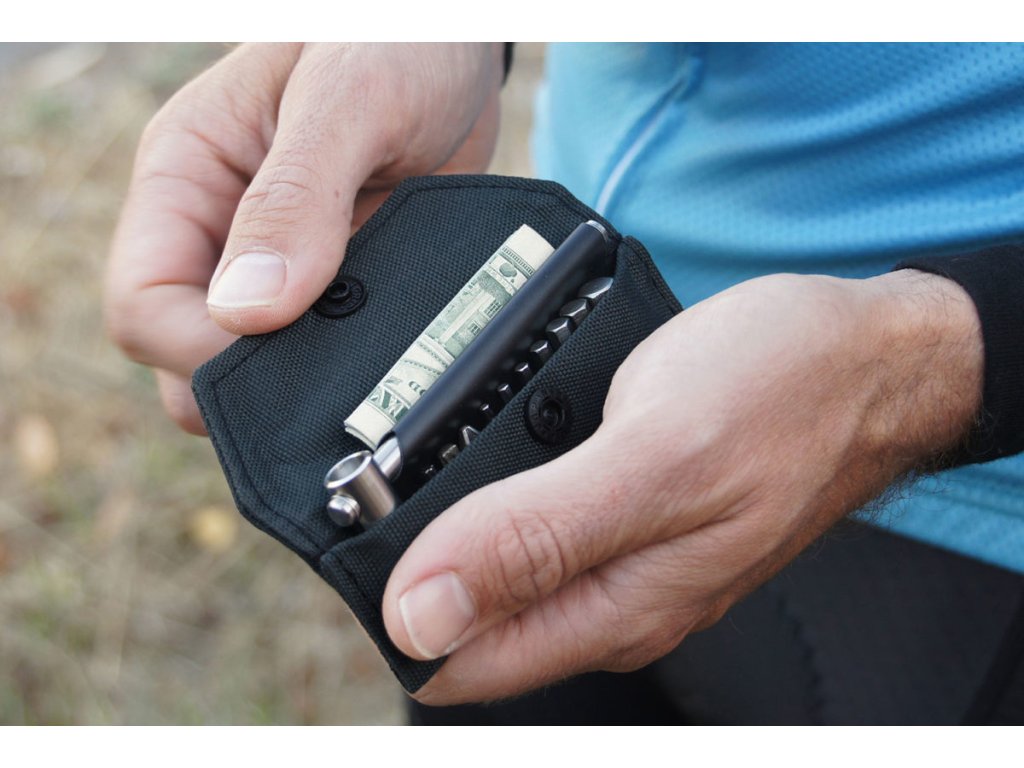 Minimalistická sada nářadí na kolo od značky Spurcycle made in USA. Sada cyklonářadí je balená ve stylové ručně šité brašně a obsahuje titanovou ráčnu a 10 ocelových pochromovaných bitů.